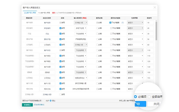 【手機上錄入客戶界面顯示】——選擇必填項則在手機上只顯示必填項。