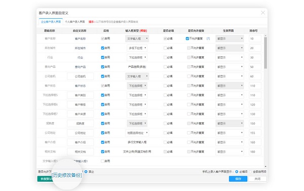 【不可重復】——勾選不可重復則填寫的內容不能重復。例如,客戶名稱和電話號碼不能重復可以避免重復錄入客戶和撞客。