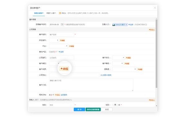 在客戶錄入界面,每個下拉選擇框后面會有一個編輯按鈕,如下圖: