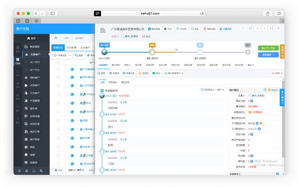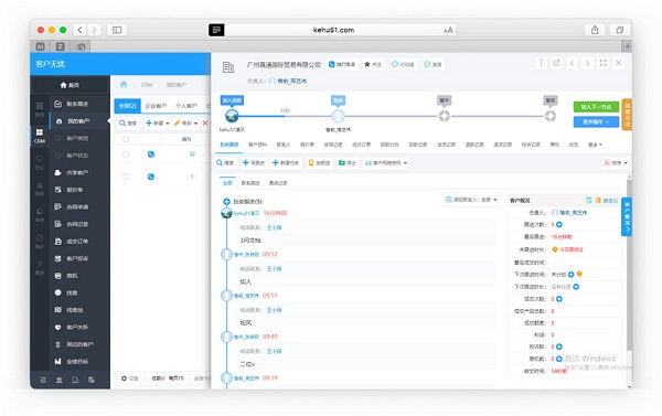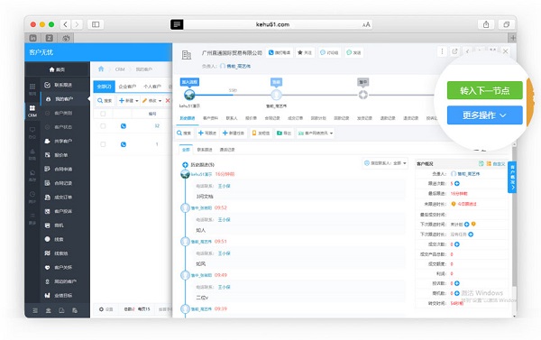 流程設置好后,在客戶詳情里就會出現流程節點。