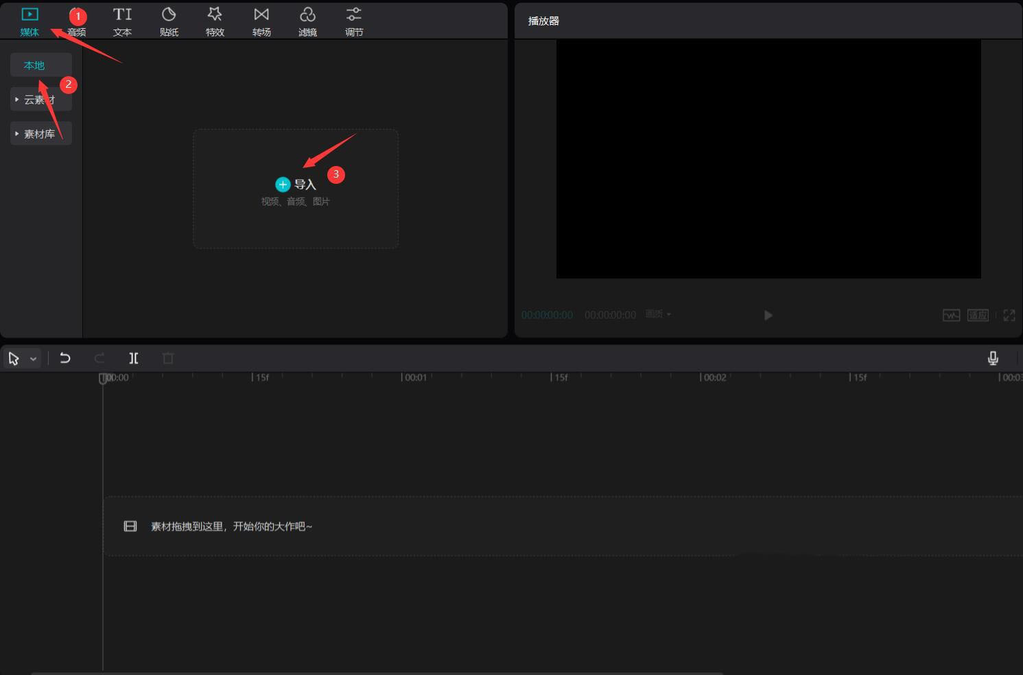 點(diǎn)擊媒體按鈕,然后點(diǎn)擊本地按鈕,再點(diǎn)擊導(dǎo)入按鈕,導(dǎo)入剛才導(dǎo)出的視頻,見(jiàn)下圖。