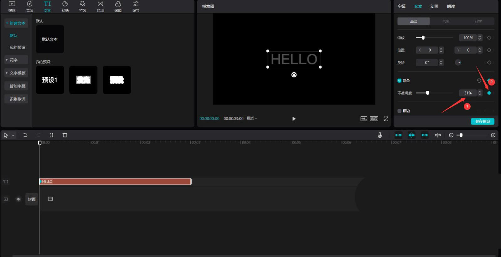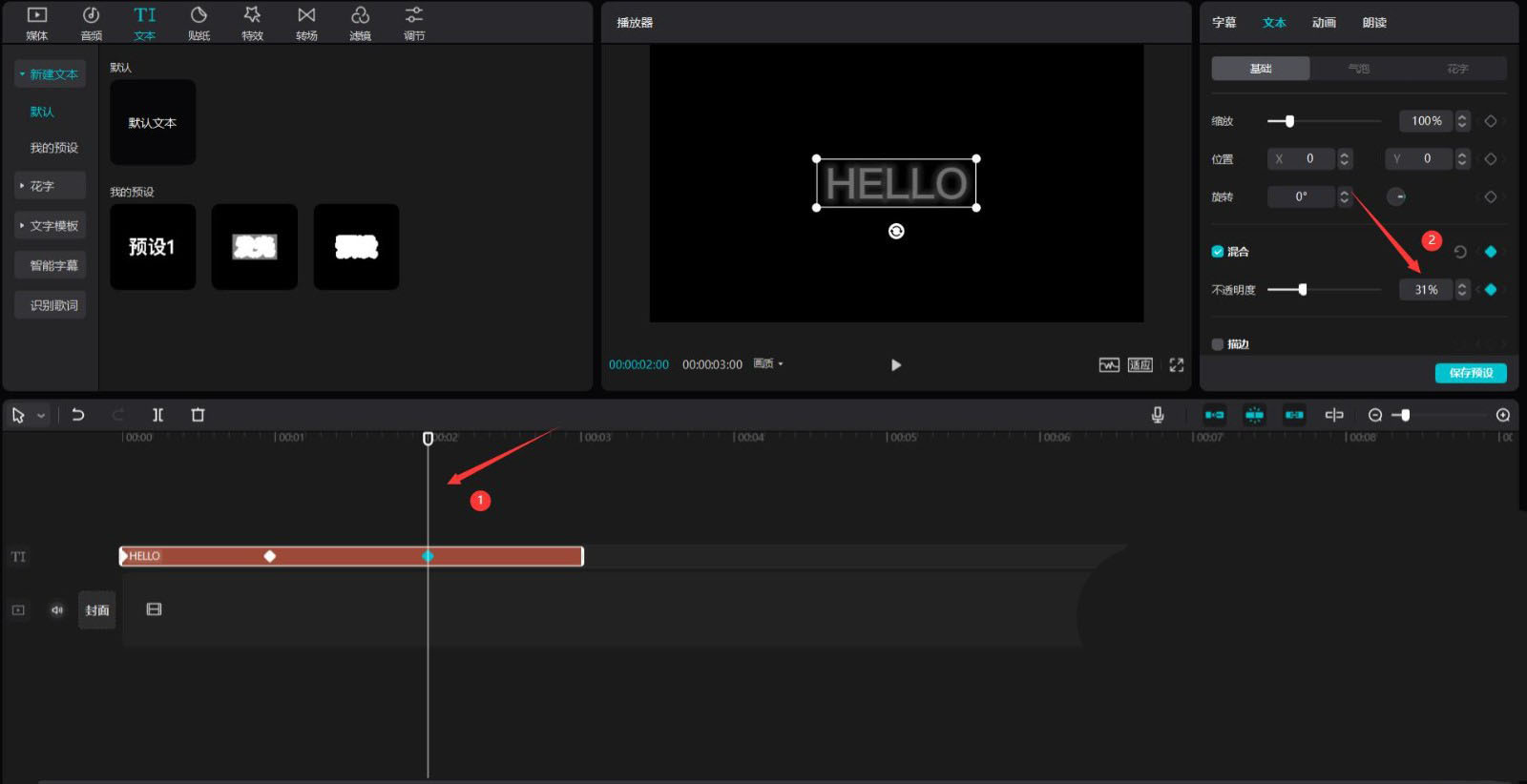 將時間軸移動到2秒處,更改不透明度為31%,見下圖。