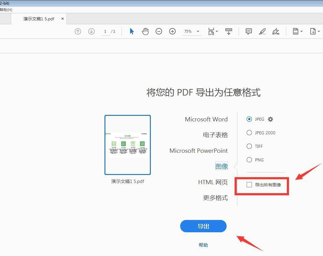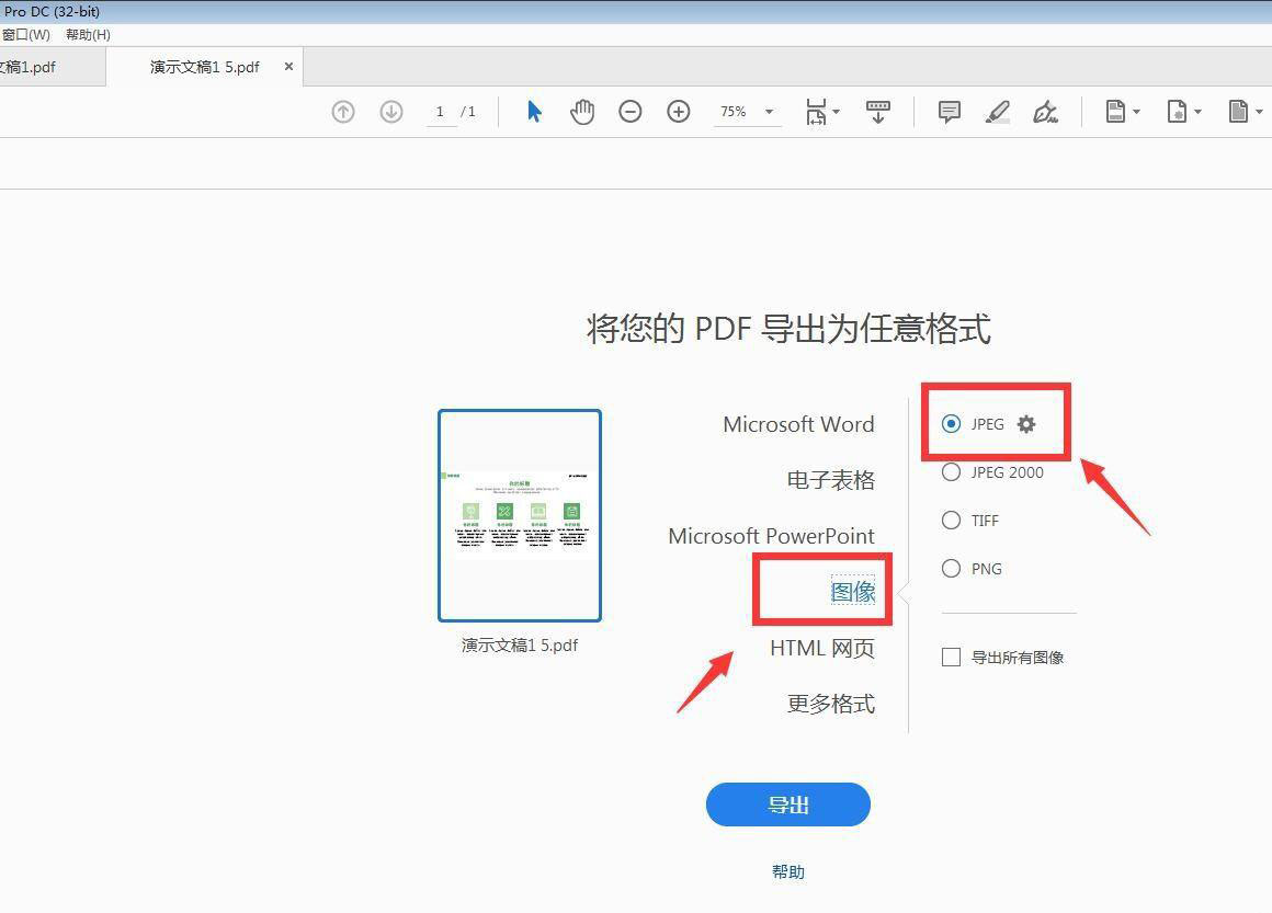 選擇圖像,導(dǎo)出格式選擇jpg,可以導(dǎo)出所有頁(yè)面。