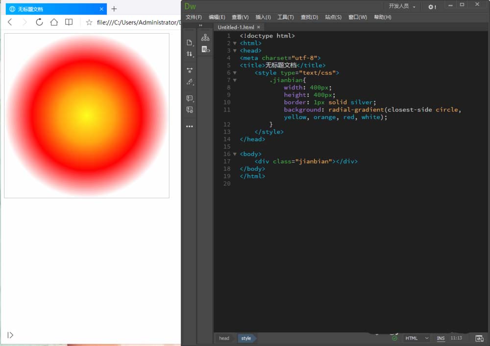 Dreamweaver中CSS怎么制作徑向圓形漸變的五種方法