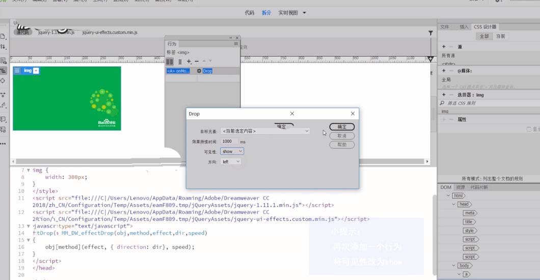 Dreamweaver網頁元素怎么制作漸隱漸現效果教程